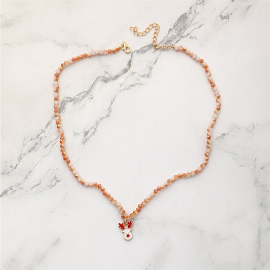 Christmas Necklace Santa Claus Little Snowman Elk Pendant Rice Bead Necklace Christmas Gift