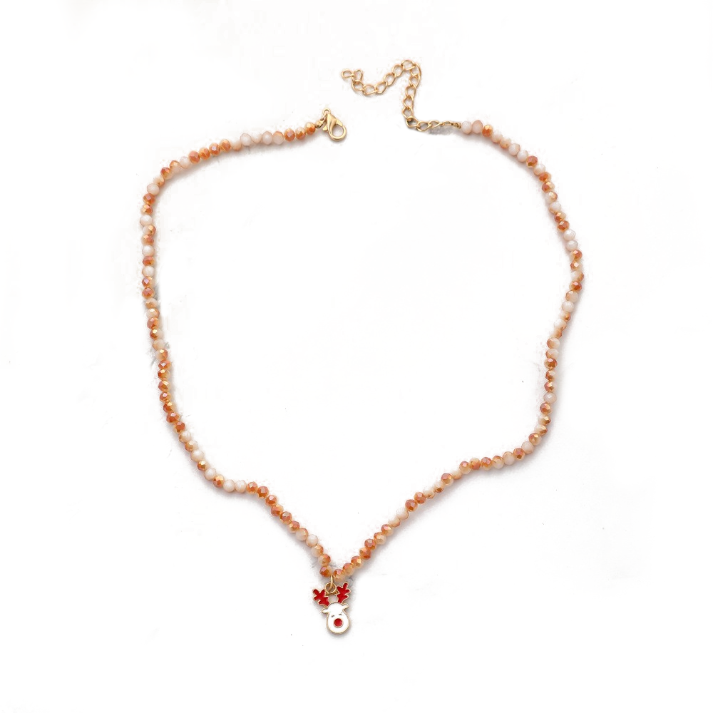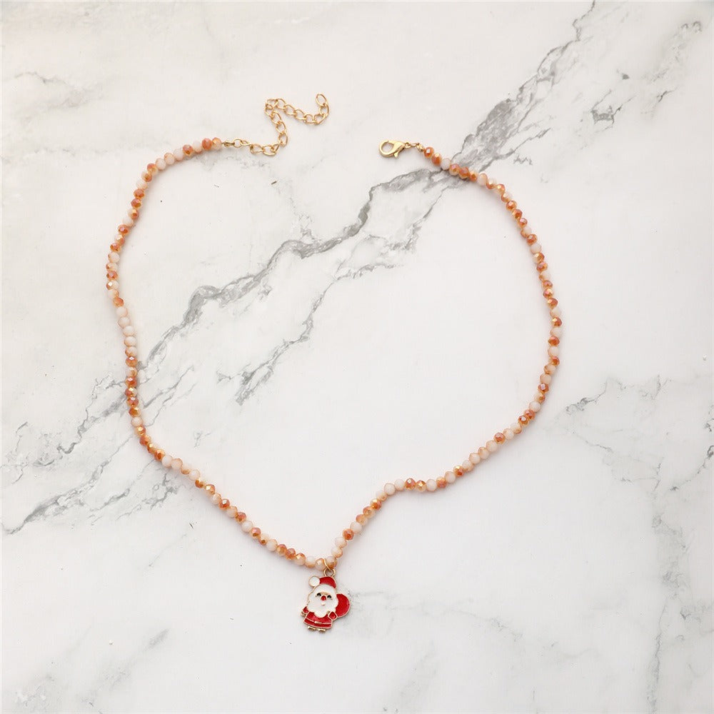 Christmas Necklace Santa Claus Little Snowman Elk Pendant Rice Bead Necklace Christmas Gift